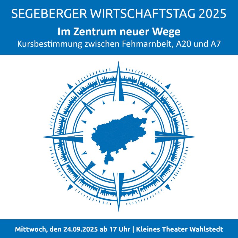 Gemeinsam mit Experten wollen wir beim diesjährigen Segeberger Wirtschaftstag zum Thema „Im Zentrum neuer Wege – Kursbestimmung zwischen Fehmarnbelt, A20 und A7“ Denkanstöße geben und miteinander ins Gespräch kommen.